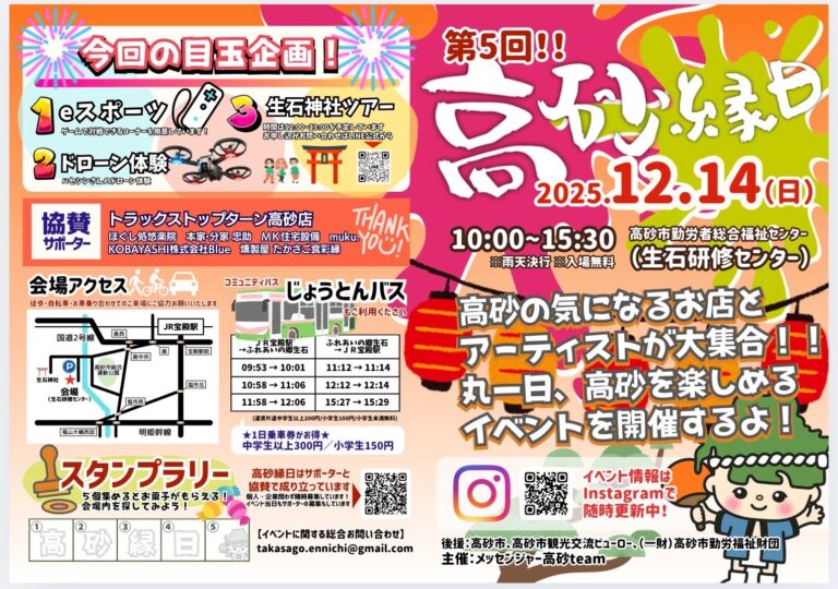 第5回 高砂縁日 2025年12月14日(日)10:00~15:30https://hanabi.t […] -